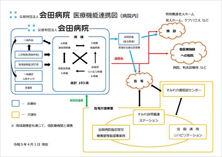 - 当院は地域の医療機関や行政機関などとの連携を密にして地域医療の充実に力をいれて行います。