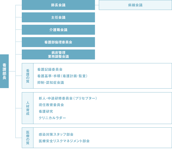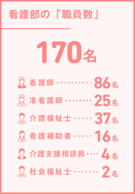 - 私たちは、人間を愛する心とかけがえのない命を大切にし、患者さまに信頼され満足していただける看護・介護を実践します
